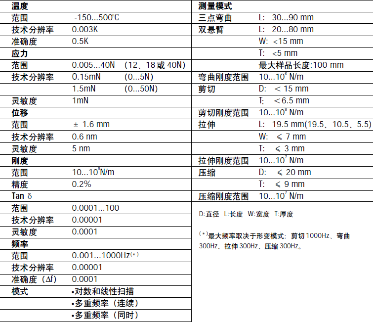 动态热机械分析是测量样品在周期振动应力下,随温度或频率变化而变化的力学性能和粘弹性能的技术。聚合物(热塑性塑料、热固性树脂、弹性体、粘合剂和复合材料)、陶瓷、金属、其它粘弹性材料以及纤维、薄膜等。同时直接测量样品的应力和应变,从而得到准确的模量。同时直接测量位移和应力-准确的模量;能在很宽的应力范围-能测量很硬和很软的样品;应力控制/应变控制智能切换-全程测量样品由软变硬过程。采用不同变形模式中的一种(弯曲、拉伸、剪切与压缩)对样品施加应力,测量模量与时间或温度的函数,并且能提供相变信息。